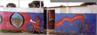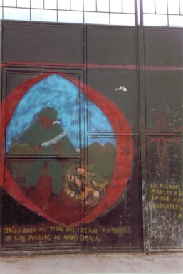 Los reclamos de libertad molestó a los ricos, por lo que mandó a sus generales y ejército a bombardear a nuestras comunidades / El Ejército masacró, violó, torturó, secuestró y asesinó a miles de hermanos pobres y revolucionarios cometiendo genocidio / En 1996 finalizó la Guerra. Hoy reivindicamos nuestra lucha y recordamos a los caídos que guían nuestro camino por la igualdad… / porque a pesar de los golpes, florecerás Guatemala (text junt a unes pintures reivindicatives a la població de Nebaj, veure abaix).