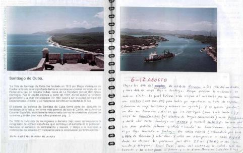 Imatge (adalt): Castillo del Morro i port de Santiago de Cuba (Pag. 88/89, Diari de Viatge). A poques milles de la costa cubana, les illes de Jamaica i Haití i la república Dominicana.
