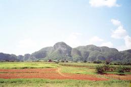Imatges (adalt): Campismo «Dos Hermanas» i camps de cultiu de tabac, encara sense sembrar, al Parque Nacional de Viñales (província de Pinar del Río).