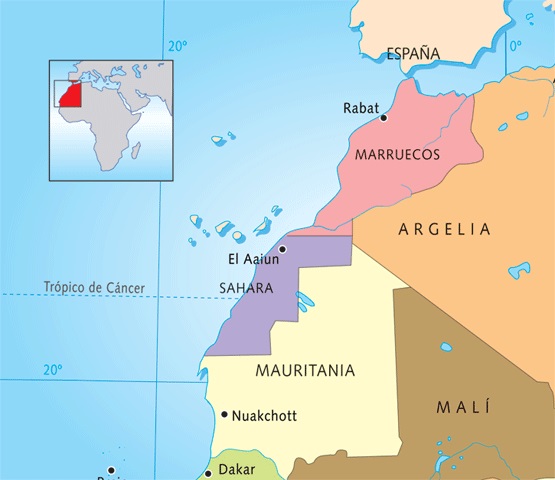 Tornem enrera un moment: Després del «reparto de Africa (entre les potències europees) fraguado en la Conferencia de Berlin (1885)…». «En 1906, en la Conferencia de Algeciras, quedaron delimitadas finalmente las fronteras coloniales: a Francia le correspondieron unos siete millones de kilómetros cuadrados en el centro y norte del continente (Algèria) y a España, 290.000 kilómetros en la franja costera del norte del desierto, además de la administración, bajo el formato de Protectorado, del norte de Marruecos: el Rif y el país Yebala». (…) «…ésta tierra desértica resultaría tener importancia logística como escala de viaje en la navegación hacia la colonia de Guinea Equatorial y como centro de provisionamiento para la flota pesquera de Canarias. Y un gran valor estratégico al convertirse en paraguas protector de unas islas genuinamente españolas situadas a cien kilómetros de la costa africana» («Historia del Sáhara y su conflicto»).